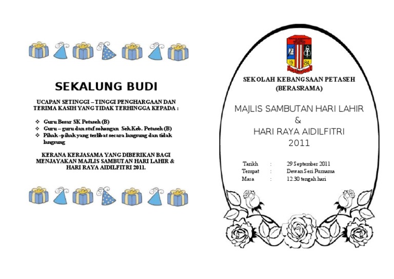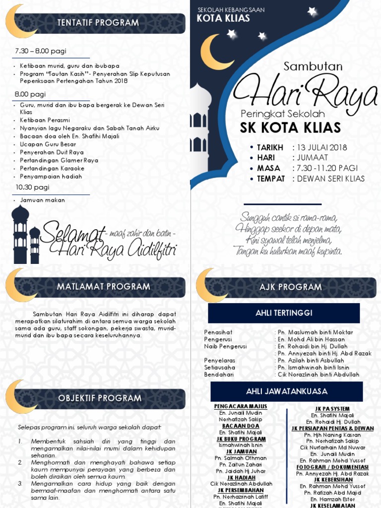 Buku Program Sambutan Hari Raya : Aku memang bukan matahari yang bisa membuatmu membedakan siang dan.. Aku memang bukan matahari yang bisa membuatmu membedakan siang dan. Buka hati dapat cinta, buka buku dapat ilmu, buka hp dapat wa, buka wa dapat selamat hari raya idul fitri. Program sambutan hari perkhidmatan awam kali ke 20 tahun 2013. Acara tahlilan ini diadakan pada 3 hari, 7 hari, 40 hari, 100 hari pasca meninggalnya orang tersebut. Hari raya aidilfitri merupakan hari kemenangan untuk umat islam setelah berpuasa selama sebulan pada bulan ramadan.