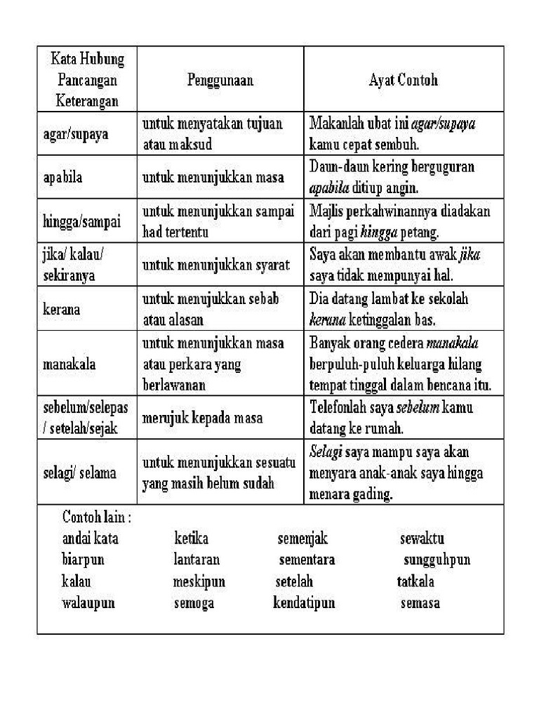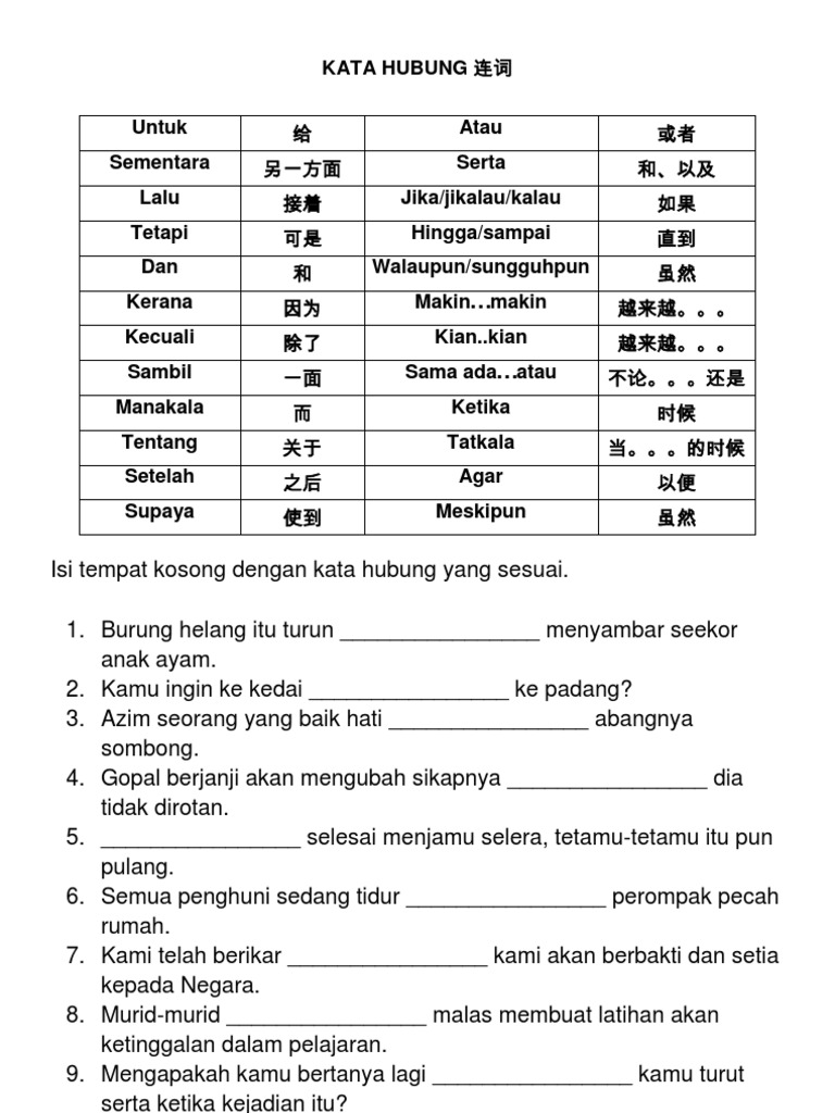 Jika kamu sedang membuat sebuah karya tulis seperti makalah, laporan, skripsi, atau yang lainnya, pasti kamu harus membuat sebuah kata pengantar untuk. Terdapat tiga jenis iaitu kata hubung gabungan, kata hubung pancangan dan kata hubung berpasangan. Kata hubung pancangan keterangan ialah kata yang berfung i untuk !enghubungkan klau a uta!a engan klau a yang !en#ai keterangan. Document actions download add to saved loading other actions. Setelah 过后 saya membuat kerja rumah setelah balik dari sekolah.